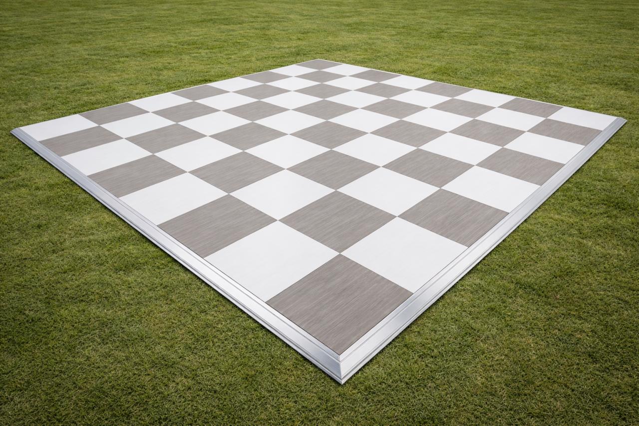 Make a statement on the dance floor with our Light Grey Checkered Dance Floor Rental from CFM Event Rentals. Featuring a bright light grey checkered pattern, this floor delivers a clean, upscale look that’s perfect for weddings, sweet 16s, corporate events, and elegant tented receptions. It instantly creates a beautiful focal point, looks incredible in photos and videos, and provides a smooth, stable surface for dancing—especially on grass or uneven ground.